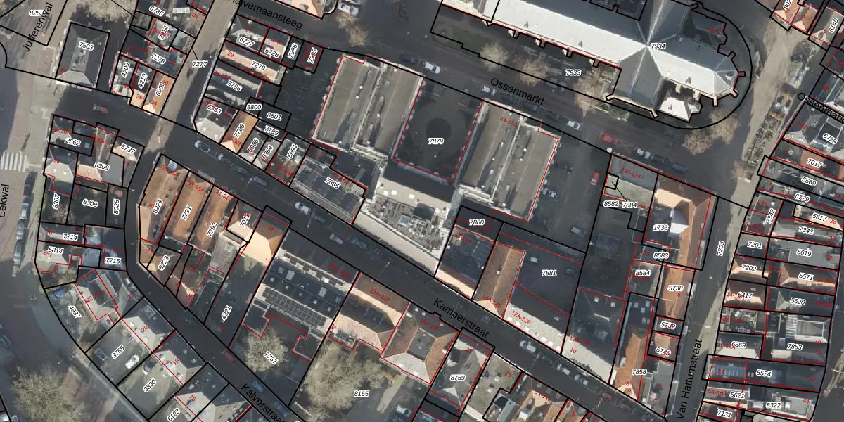 Het perceel waarop Ossenmarkt 80 staat heeft een oppervlakte van 2328 m². Dit is een zeer groot perceel. De perceeloppervlakte wordt geregistreerd door het Kadaster. Gedetailleerde informatie over de maten van dit perceel kunt u vinden in het rapport Kadastrale kaart met maatvoering van Ossenmarkt 80.