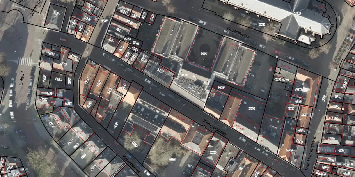 Het perceel waarop Ossenmarkt 86 staat heeft een oppervlakte van 2328 m². Dit is een zeer groot perceel. De perceeloppervlakte wordt geregistreerd door het Kadaster. Gedetailleerde informatie over de maten van dit perceel kunt u vinden in het rapport Kadastrale kaart met maatvoering van Ossenmarkt 86.