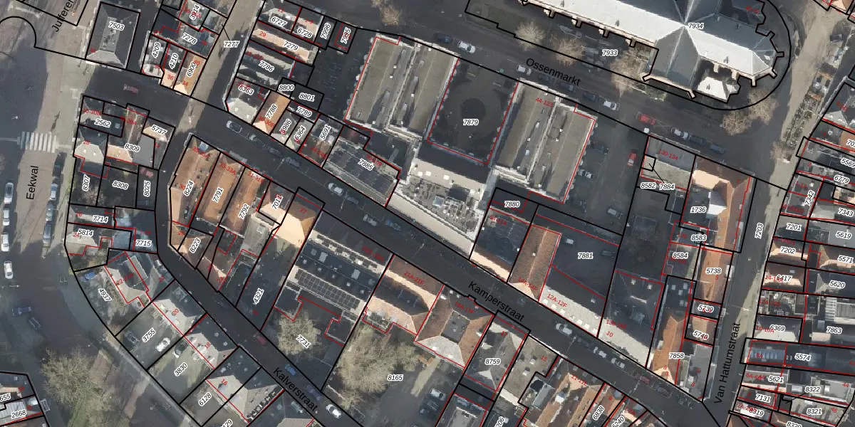 Het perceel waarop Ossenmarkt 89 staat heeft een oppervlakte van 2328 m². Dit is een zeer groot perceel. De perceeloppervlakte wordt geregistreerd door het Kadaster. Gedetailleerde informatie over de maten van dit perceel kunt u vinden in het rapport Kadastrale kaart met maatvoering van Ossenmarkt 89.