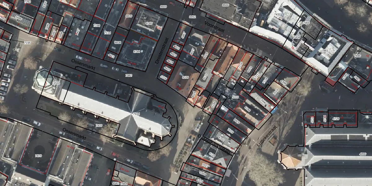 Het perceel waarop Ossenmarkt 9-A staat heeft een oppervlakte van 210 m². Dit is een middelgroot perceel. De perceeloppervlakte wordt geregistreerd door het Kadaster. Gedetailleerde informatie over de maten van dit perceel kunt u vinden in het rapport Kadastrale kaart met maatvoering van Ossenmarkt 9-A.
