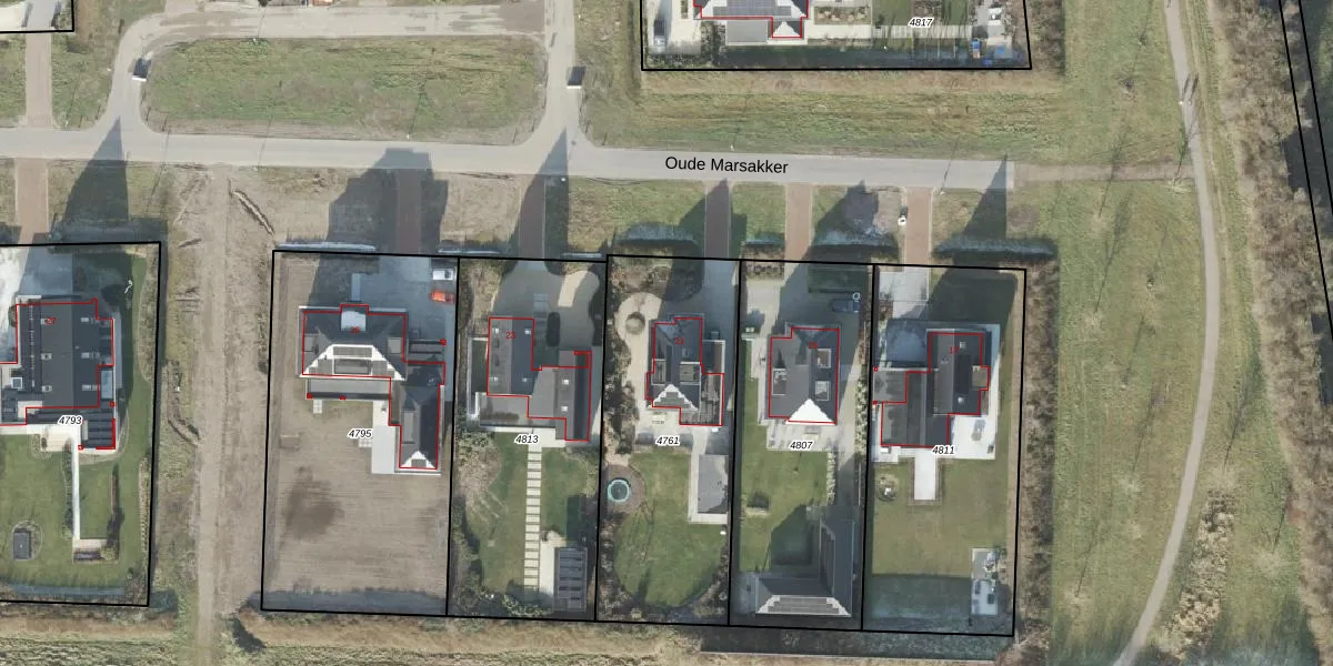 Het perceel waarop Oude Marsakker 21 staat heeft een oppervlakte van 1099 m². Dit is een zeer groot perceel. De perceeloppervlakte wordt geregistreerd door het Kadaster. Gedetailleerde informatie over de maten van dit perceel kunt u vinden in het rapport Kadastrale kaart met maatvoering van Oude Marsakker 21.