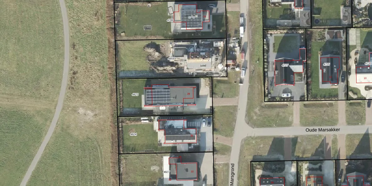 Het perceel waarop Oude Marsgrond 28 staat heeft een oppervlakte van 1036 m². Dit is een zeer groot perceel. De perceeloppervlakte wordt geregistreerd door het Kadaster. Gedetailleerde informatie over de maten van dit perceel kunt u vinden in het rapport Kadastrale kaart met maatvoering van Oude Marsgrond 28.