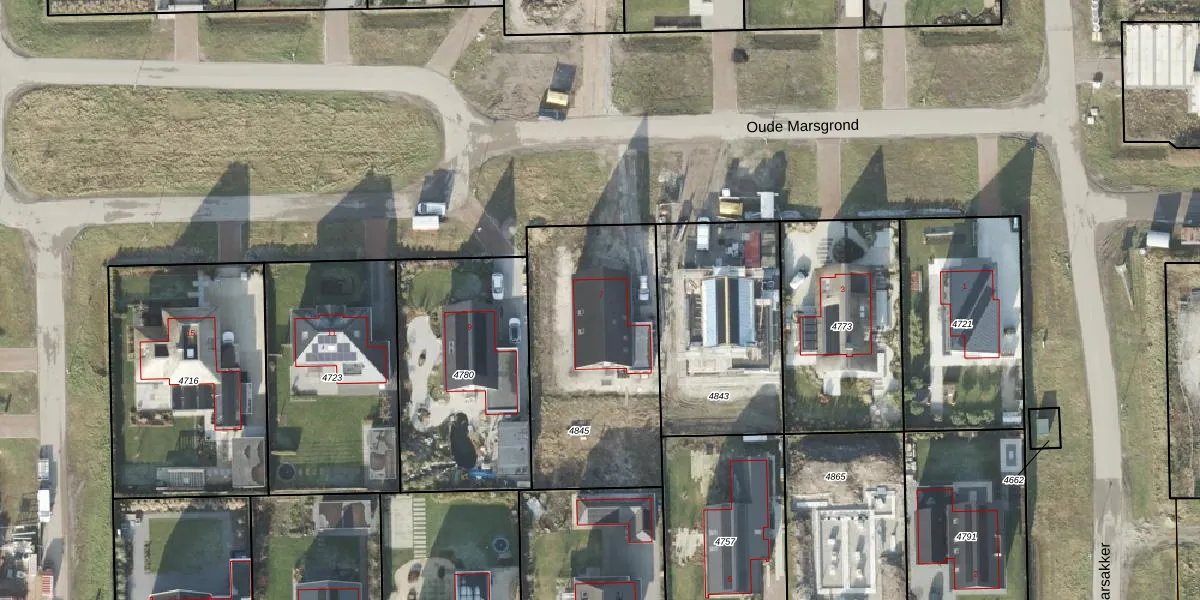 Het perceel waarop Oude Marsgrond 7 staat heeft een oppervlakte van 950 m². Dit is een groot perceel. De perceeloppervlakte wordt geregistreerd door het Kadaster. Gedetailleerde informatie over de maten van dit perceel kunt u vinden in het rapport Kadastrale kaart met maatvoering van Oude Marsgrond 7.