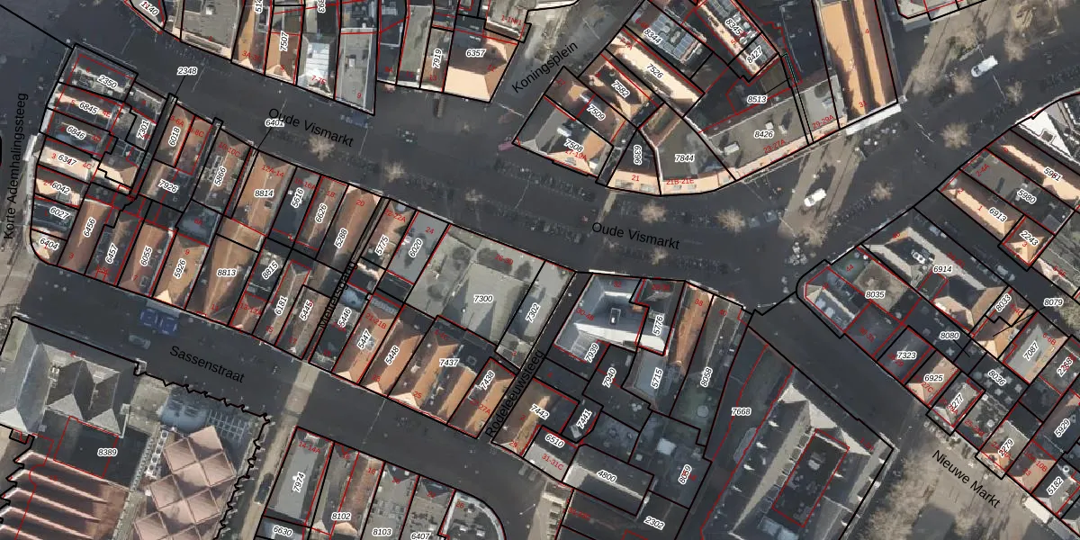 Het perceel waarop Oude Vismarkt 30 staat heeft een oppervlakte van 328 m². Dit is een groot perceel. De perceeloppervlakte wordt geregistreerd door het Kadaster. Gedetailleerde informatie over de maten van dit perceel kunt u vinden in het rapport Kadastrale kaart met maatvoering van Oude Vismarkt 30.