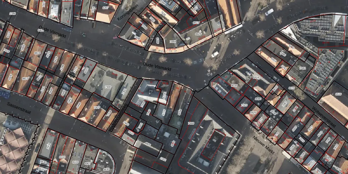 Het perceel waarop Oude Vismarkt 38 staat heeft een oppervlakte van 175 m². Dit is een middelgroot perceel. De perceeloppervlakte wordt geregistreerd door het Kadaster. Gedetailleerde informatie over de maten van dit perceel kunt u vinden in het rapport Kadastrale kaart met maatvoering van Oude Vismarkt 38.