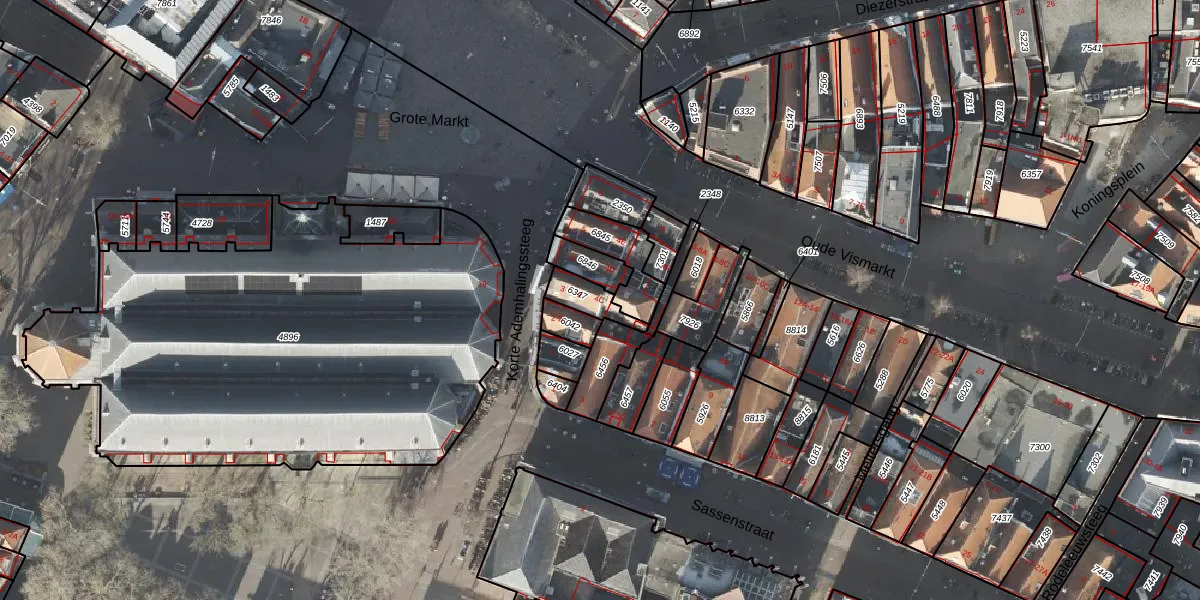 Het perceel waarop Oude Vismarkt 4-C staat heeft een oppervlakte van 67 m². Dit is een klein perceel. De perceeloppervlakte wordt geregistreerd door het Kadaster. Gedetailleerde informatie over de maten van dit perceel kunt u vinden in het rapport Kadastrale kaart met maatvoering van Oude Vismarkt 4-C.
