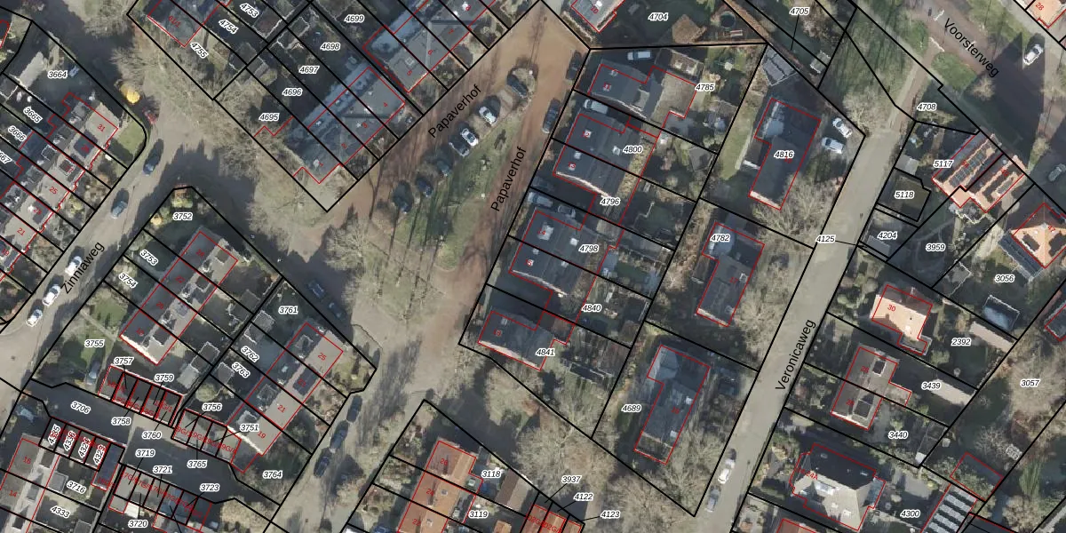 Het perceel waarop Papaverhof 15 staat heeft een oppervlakte van 300 m². Dit is een groot perceel. De perceeloppervlakte wordt geregistreerd door het Kadaster. Gedetailleerde informatie over de maten van dit perceel kunt u vinden in het rapport Kadastrale kaart met maatvoering van Papaverhof 15.