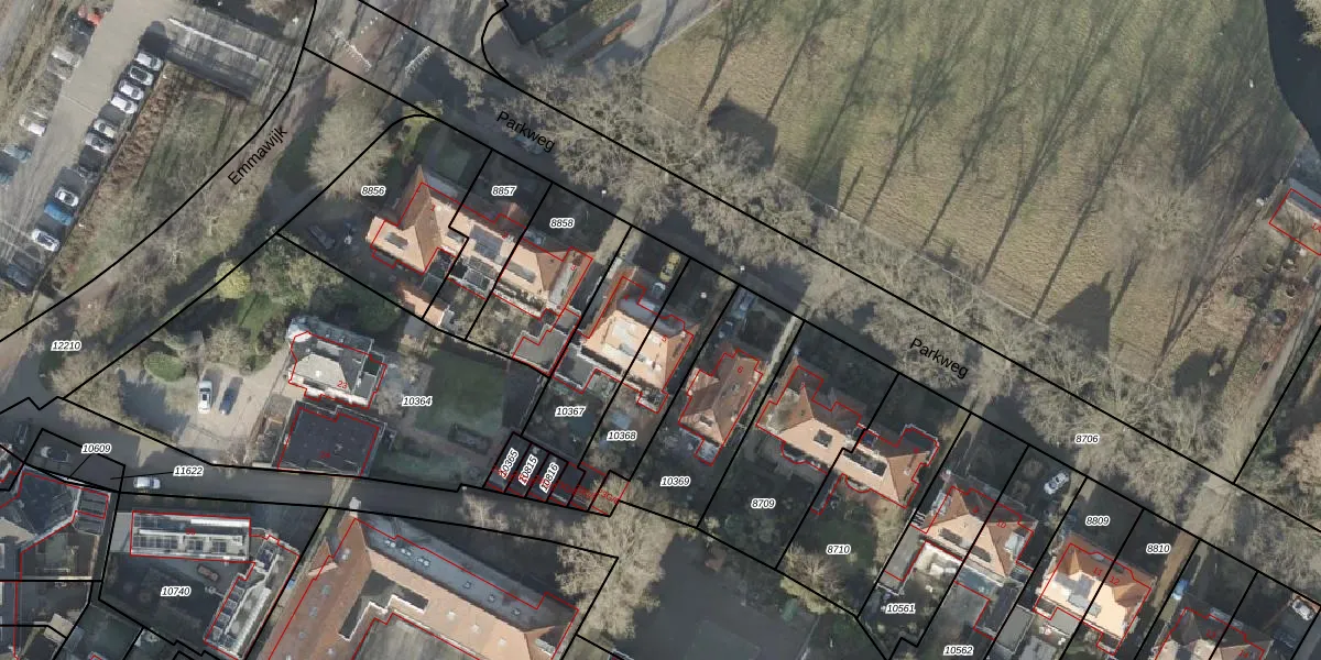 Het perceel waarop Parkweg 5 staat heeft een oppervlakte van 303 m². Dit is een groot perceel. De perceeloppervlakte wordt geregistreerd door het Kadaster. Gedetailleerde informatie over de maten van dit perceel kunt u vinden in het rapport Kadastrale kaart met maatvoering van Parkweg 5.