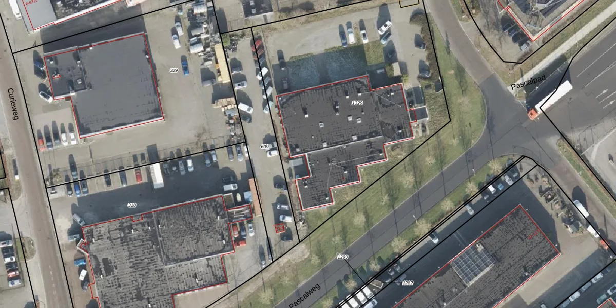 Het perceel waarop Pascalweg 1-D staat heeft een oppervlakte van 3229 m². Dit is een zeer groot perceel. De perceeloppervlakte wordt geregistreerd door het Kadaster. Gedetailleerde informatie over de maten van dit perceel kunt u vinden in het rapport Kadastrale kaart met maatvoering van Pascalweg 1-D.