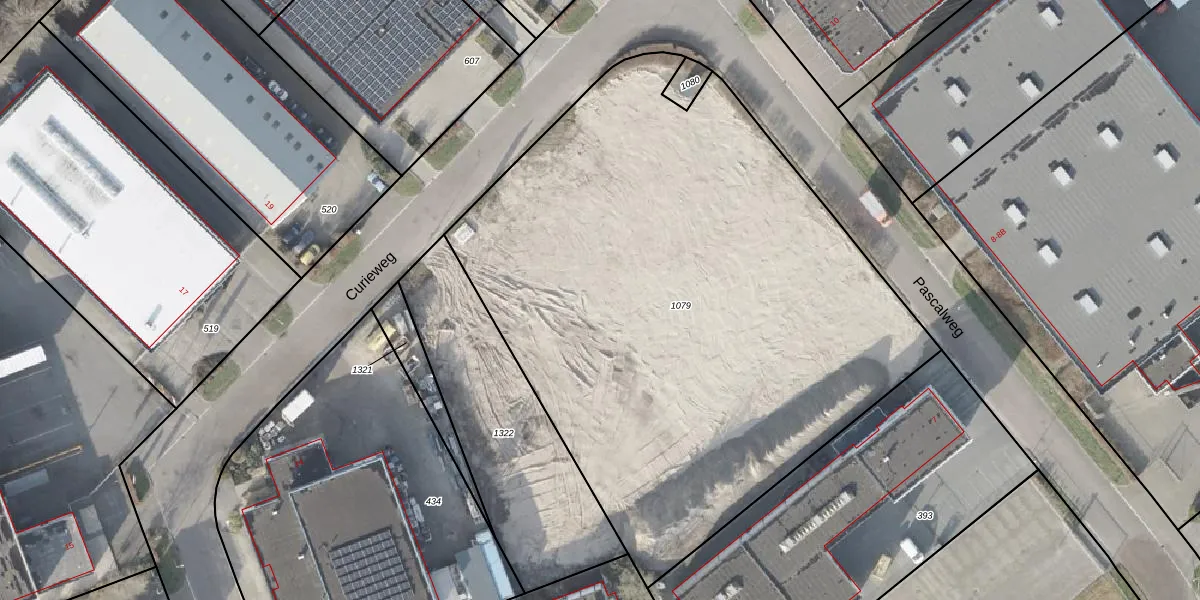 Het perceel waarop Pascalweg 53 staat heeft een oppervlakte van 3955 m². Dit is een zeer groot perceel. De perceeloppervlakte wordt geregistreerd door het Kadaster. Gedetailleerde informatie over de maten van dit perceel kunt u vinden in het rapport Kadastrale kaart met maatvoering van Pascalweg 53.