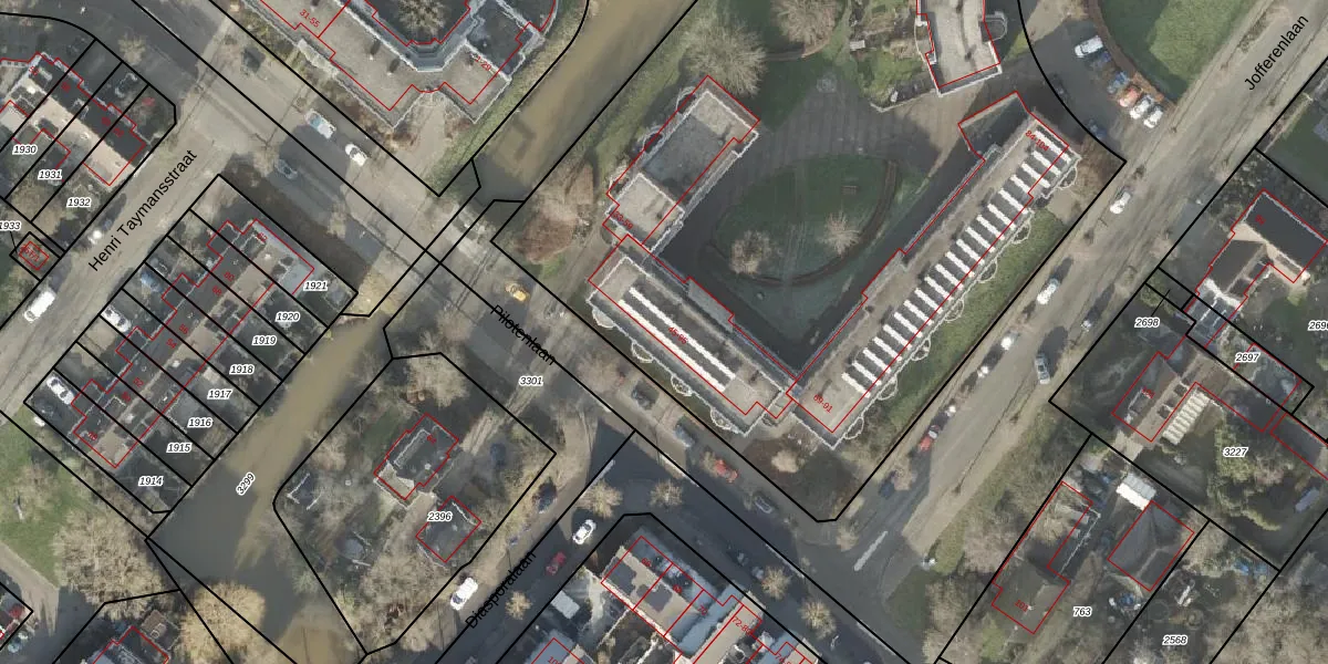 Het perceel waarop Pilotenlaan 65 staat heeft een oppervlakte van 7805 m². Dit is een zeer groot perceel. De perceeloppervlakte wordt geregistreerd door het Kadaster. Gedetailleerde informatie over de maten van dit perceel kunt u vinden in het rapport Kadastrale kaart met maatvoering van Pilotenlaan 65.
