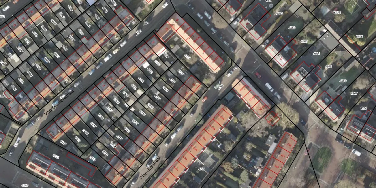 Gebruik de zoekbalk of klik op een perceel voor informatie over de adressen binnen dit perceel.