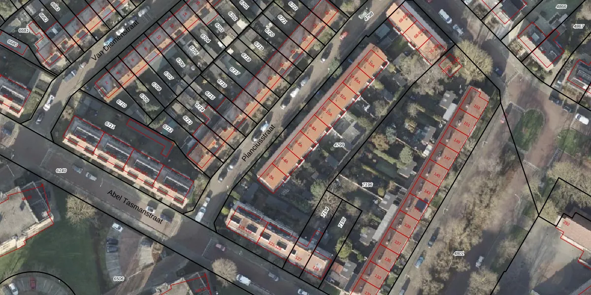 Het perceel waarop Planciusstraat 6 staat heeft een oppervlakte van 2440 m². Dit is een zeer groot perceel. De perceeloppervlakte wordt geregistreerd door het Kadaster. Gedetailleerde informatie over de maten van dit perceel kunt u vinden in het rapport Kadastrale kaart met maatvoering van Planciusstraat 6.