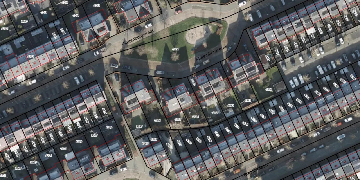 Plattenborgstraat 33 is gelegen op kadastraal perceel ZLE00S5584. Deze kadastrale aanduiding is uniek en wordt gebruikt door het Kadaster om eigendomsrechten en andere zakelijke rechten vast te leggen. Het perceel maakt onderdeel uit van de kadastrale gemeente Zwolle.