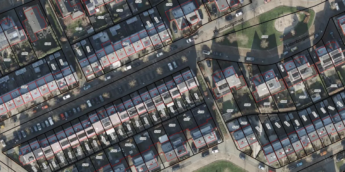 Het perceel waarop Plattenborgstraat 45 staat heeft een oppervlakte van 124 m². Dit is een middelgroot perceel. De perceeloppervlakte wordt geregistreerd door het Kadaster. Gedetailleerde informatie over de maten van dit perceel kunt u vinden in het rapport Kadastrale kaart met maatvoering van Plattenborgstraat 45.