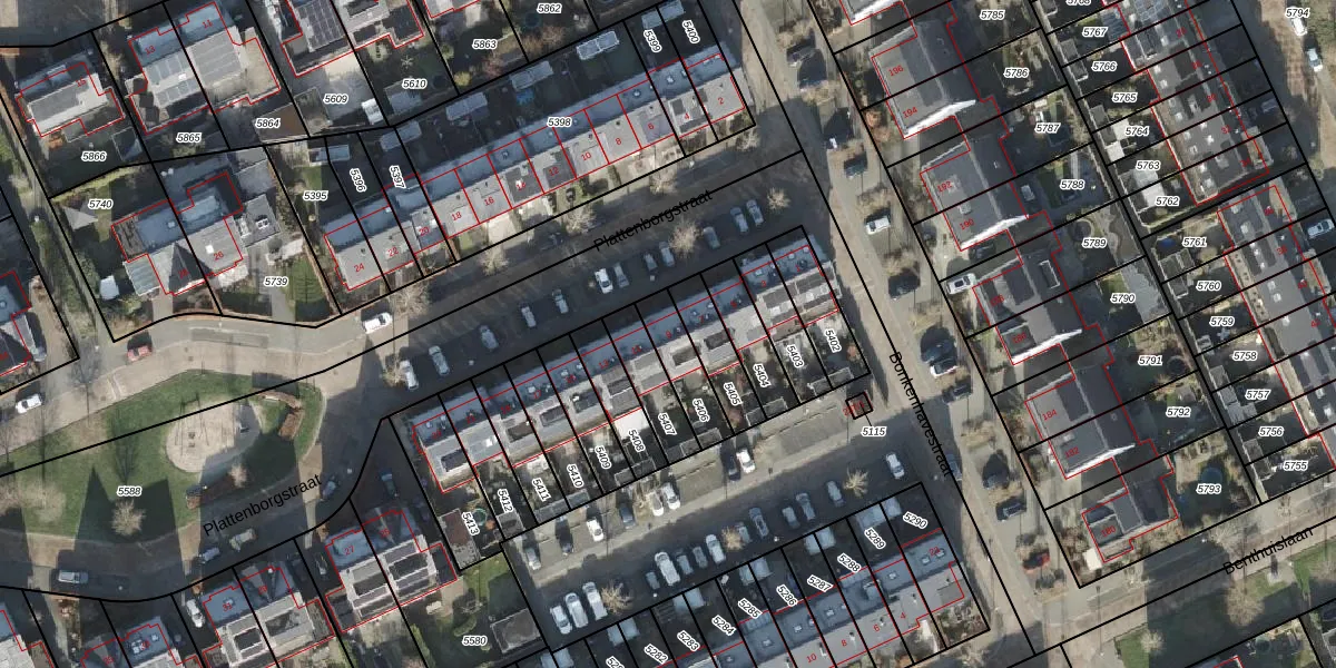 Plattenborgstraat 9 is gelegen op kadastraal perceel ZLE00S5406. Deze kadastrale aanduiding is uniek en wordt gebruikt door het Kadaster om eigendomsrechten en andere zakelijke rechten vast te leggen. Het perceel maakt onderdeel uit van de kadastrale gemeente Zwolle.