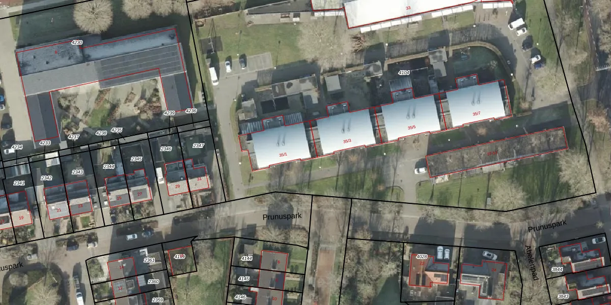 Het perceel waarop Prunuspark 35-2 staat heeft een oppervlakte van 9150 m². Dit is een zeer groot perceel. De perceeloppervlakte wordt geregistreerd door het Kadaster. Gedetailleerde informatie over de maten van dit perceel kunt u vinden in het rapport Kadastrale kaart met maatvoering van Prunuspark 35-2.