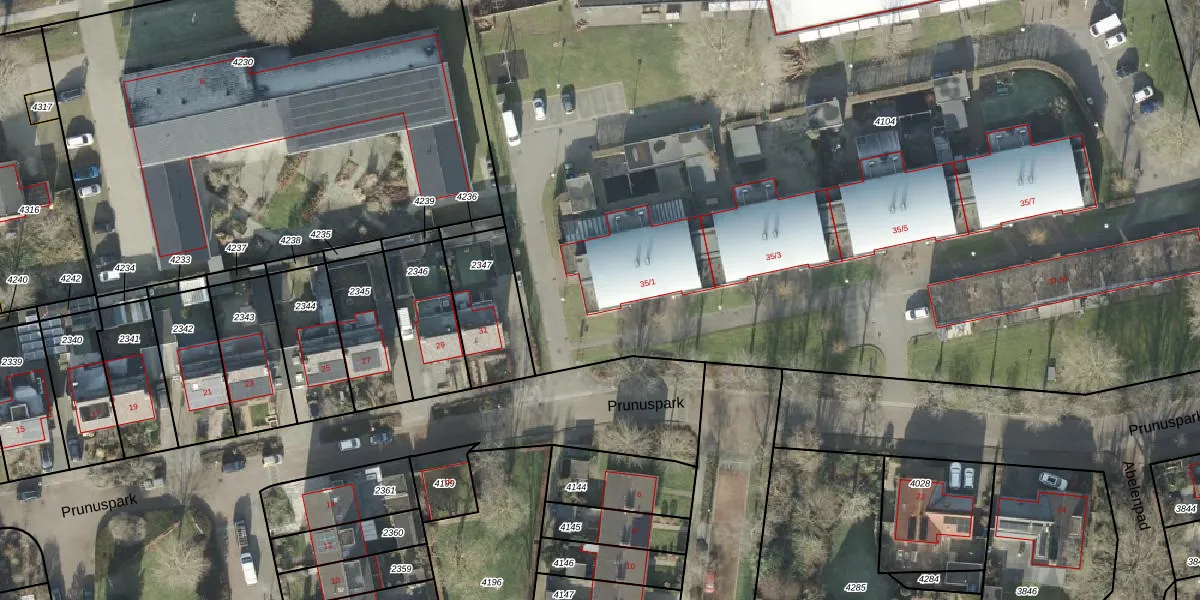Het perceel waarop Prunuspark 35-1 staat heeft een oppervlakte van 9150 m². Dit is een zeer groot perceel. De perceeloppervlakte wordt geregistreerd door het Kadaster. Gedetailleerde informatie over de maten van dit perceel kunt u vinden in het rapport Kadastrale kaart met maatvoering van Prunuspark 35-1.