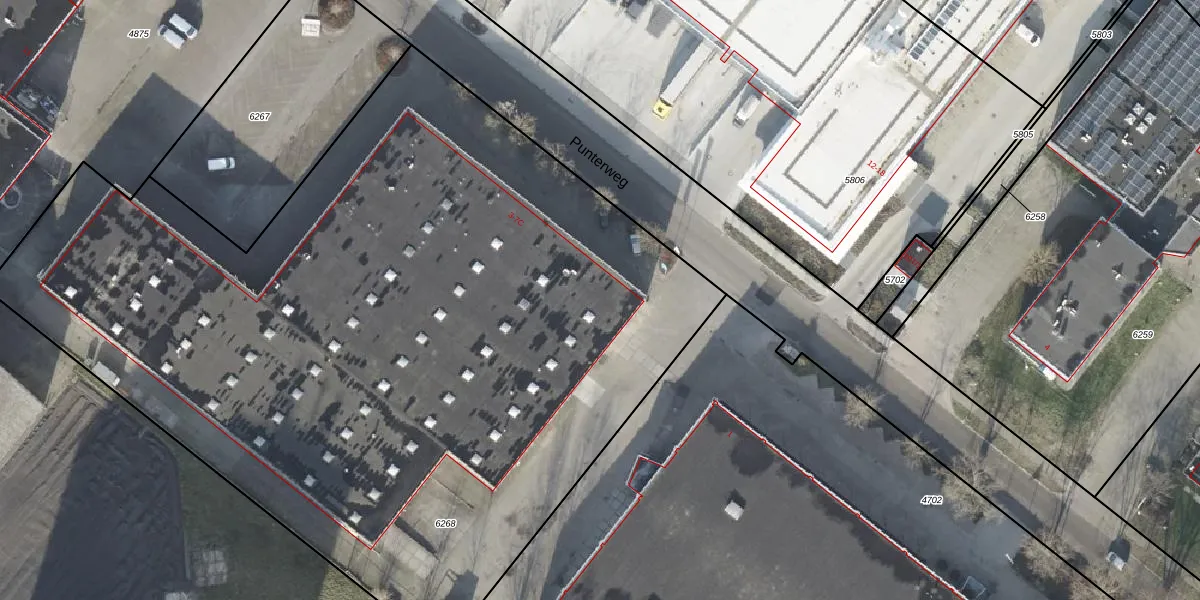 Het perceel waarop Punterweg 3 staat heeft een oppervlakte van 6015 m². Dit is een zeer groot perceel. De perceeloppervlakte wordt geregistreerd door het Kadaster. Gedetailleerde informatie over de maten van dit perceel kunt u vinden in het rapport Kadastrale kaart met maatvoering van Punterweg 3.