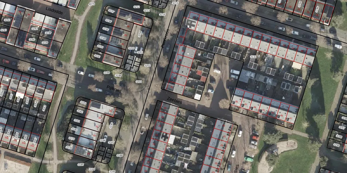 Het perceel waarop Puntkroos 32 staat heeft een oppervlakte van 3492 m². Dit is een zeer groot perceel. De perceeloppervlakte wordt geregistreerd door het Kadaster. Gedetailleerde informatie over de maten van dit perceel kunt u vinden in het rapport Kadastrale kaart met maatvoering van Puntkroos 32.