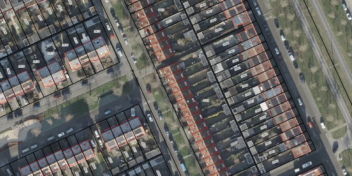 Het perceel waarop Puntmos 26 staat heeft een oppervlakte van 2665 m². Dit is een zeer groot perceel. De perceeloppervlakte wordt geregistreerd door het Kadaster. Gedetailleerde informatie over de maten van dit perceel kunt u vinden in het rapport Kadastrale kaart met maatvoering van Puntmos 26.