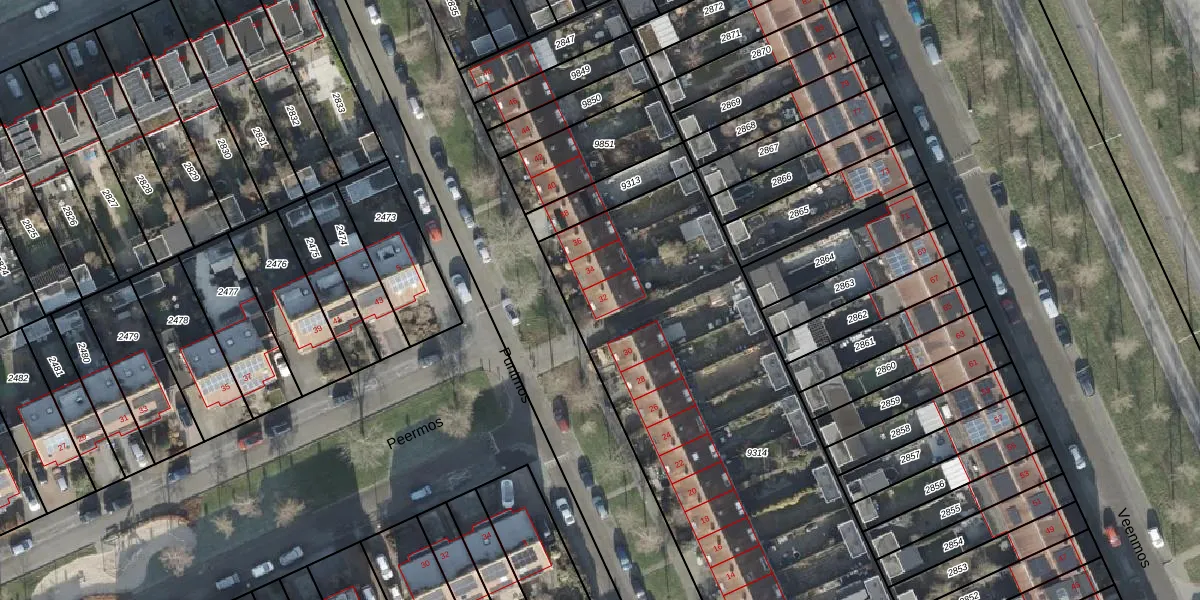 Het perceel waarop Puntmos 32 staat heeft een oppervlakte van 2665 m². Dit is een zeer groot perceel. De perceeloppervlakte wordt geregistreerd door het Kadaster. Gedetailleerde informatie over de maten van dit perceel kunt u vinden in het rapport Kadastrale kaart met maatvoering van Puntmos 32.