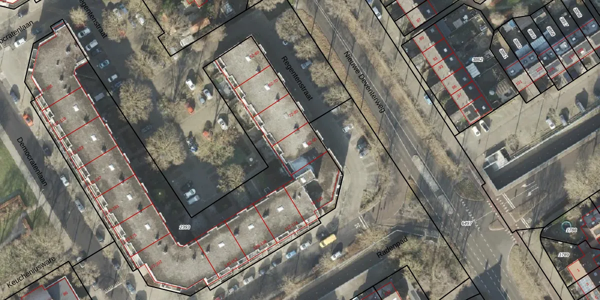 Regentenstraat 90 is gelegen op kadastraal perceel ZLE00L2393. Deze kadastrale aanduiding is uniek en wordt gebruikt door het Kadaster om eigendomsrechten en andere zakelijke rechten vast te leggen. Het perceel maakt onderdeel uit van de kadastrale gemeente Zwolle.