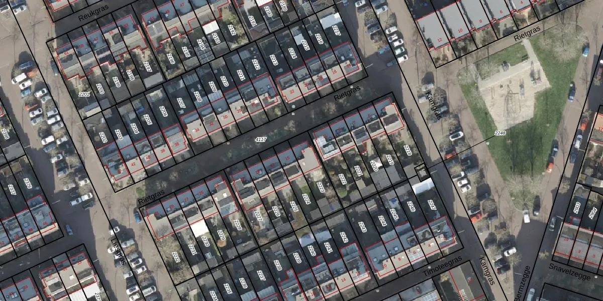 Rietgras 13 is gelegen op kadastraal perceel ZLE00S2223. Deze kadastrale aanduiding is uniek en wordt gebruikt door het Kadaster om eigendomsrechten en andere zakelijke rechten vast te leggen. Het perceel maakt onderdeel uit van de kadastrale gemeente Zwolle.