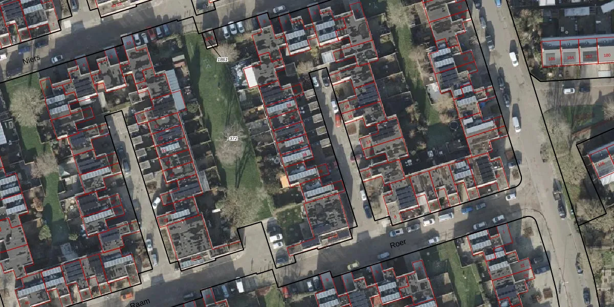 Het perceel waarop Roer 36 staat heeft een oppervlakte van 1,2 ha. Dit is een zeer groot perceel. De perceeloppervlakte wordt geregistreerd door het Kadaster. Gedetailleerde informatie over de maten van dit perceel kunt u vinden in het rapport Kadastrale kaart met maatvoering van Roer 36.