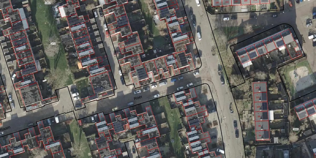 Het perceel waarop Roer 6 staat heeft een oppervlakte van 1,2 ha. Dit is een zeer groot perceel. De perceeloppervlakte wordt geregistreerd door het Kadaster. Gedetailleerde informatie over de maten van dit perceel kunt u vinden in het rapport Kadastrale kaart met maatvoering van Roer 6.