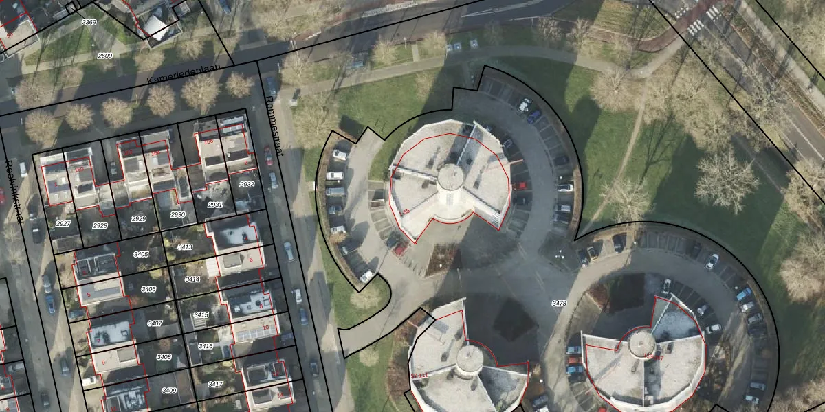 Het perceel waarop Rommestraat 35 staat heeft een oppervlakte van 6421 m². Dit is een zeer groot perceel. De perceeloppervlakte wordt geregistreerd door het Kadaster. Gedetailleerde informatie over de maten van dit perceel kunt u vinden in het rapport Kadastrale kaart met maatvoering van Rommestraat 35.