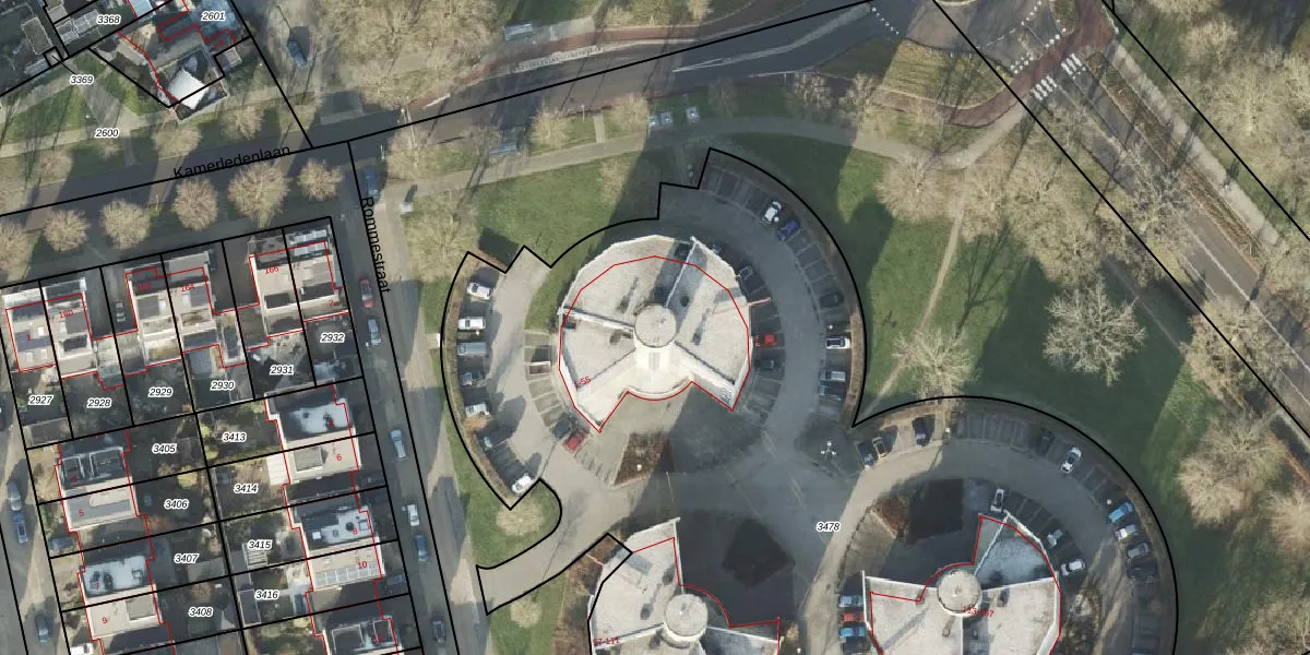 Het perceel waarop Rommestraat 9 staat heeft een oppervlakte van 6421 m². Dit is een zeer groot perceel. De perceeloppervlakte wordt geregistreerd door het Kadaster. Gedetailleerde informatie over de maten van dit perceel kunt u vinden in het rapport Kadastrale kaart met maatvoering van Rommestraat 9.