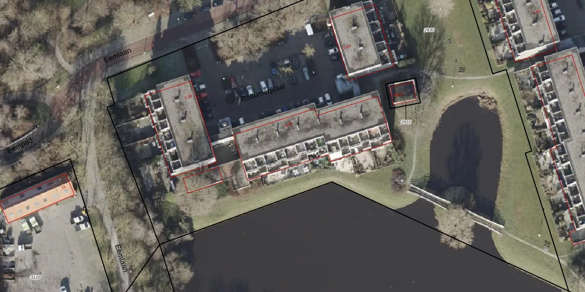 Het perceel waarop Rottumerplaat 20 staat heeft een oppervlakte van 9935 m². Dit is een zeer groot perceel. De perceeloppervlakte wordt geregistreerd door het Kadaster. Gedetailleerde informatie over de maten van dit perceel kunt u vinden in het rapport Kadastrale kaart met maatvoering van Rottumerplaat 20.