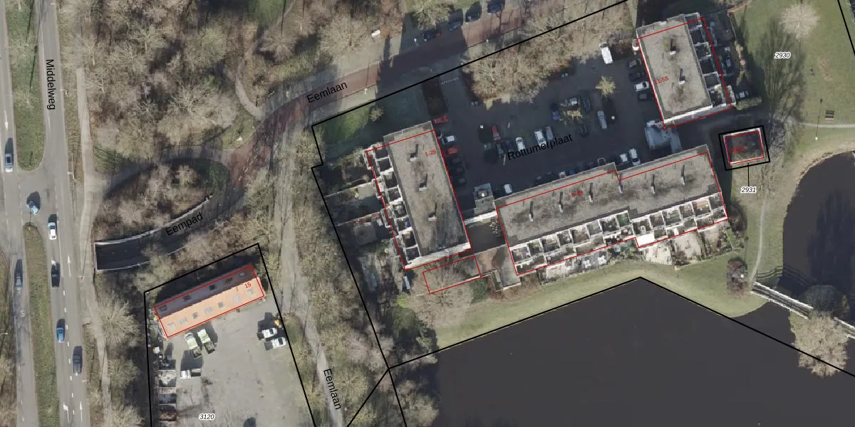 Het perceel waarop Rottumerplaat 26 staat heeft een oppervlakte van 9935 m². Dit is een zeer groot perceel. De perceeloppervlakte wordt geregistreerd door het Kadaster. Gedetailleerde informatie over de maten van dit perceel kunt u vinden in het rapport Kadastrale kaart met maatvoering van Rottumerplaat 26.