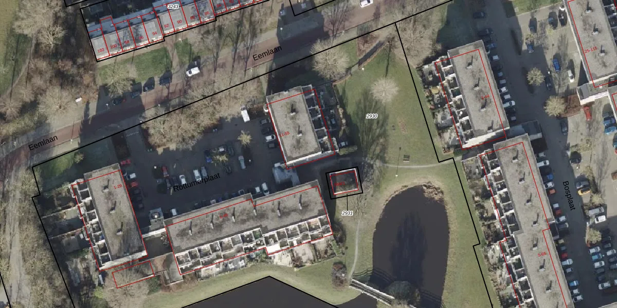Het perceel waarop Rottumerplaat 41 staat heeft een oppervlakte van 9935 m². Dit is een zeer groot perceel. De perceeloppervlakte wordt geregistreerd door het Kadaster. Gedetailleerde informatie over de maten van dit perceel kunt u vinden in het rapport Kadastrale kaart met maatvoering van Rottumerplaat 41.