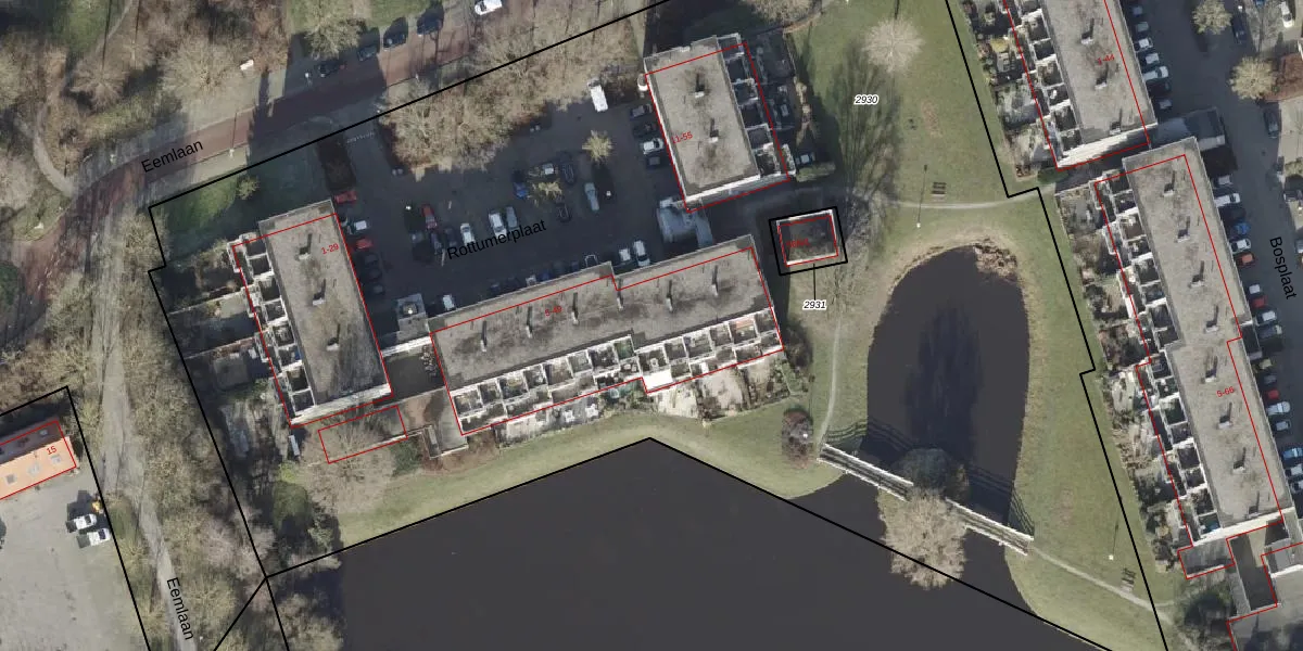 Het perceel waarop Rottumerplaat 45 staat heeft een oppervlakte van 9935 m². Dit is een zeer groot perceel. De perceeloppervlakte wordt geregistreerd door het Kadaster. Gedetailleerde informatie over de maten van dit perceel kunt u vinden in het rapport Kadastrale kaart met maatvoering van Rottumerplaat 45.