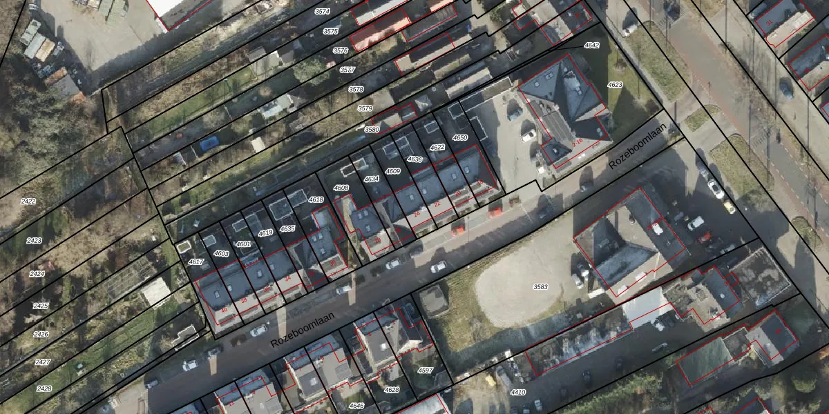 Rozeboomlaan 24 is gelegen op kadastraal perceel ZLK00M4609. Deze kadastrale aanduiding is uniek en wordt gebruikt door het Kadaster om eigendomsrechten en andere zakelijke rechten vast te leggen. Het perceel maakt onderdeel uit van de kadastrale gemeente Zwollerkerspel.