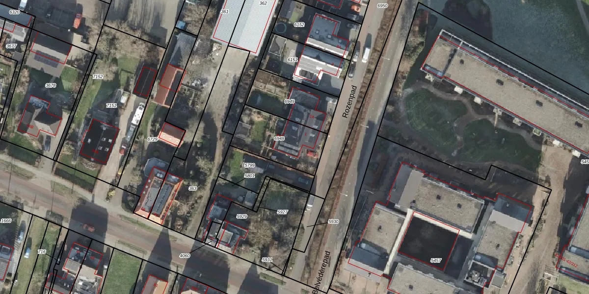 Het perceel waarop Rozenpad 1 staat heeft een oppervlakte van 451 m². Dit is een groot perceel. De perceeloppervlakte wordt geregistreerd door het Kadaster. Gedetailleerde informatie over de maten van dit perceel kunt u vinden in het rapport Kadastrale kaart met maatvoering van Rozenpad 1.