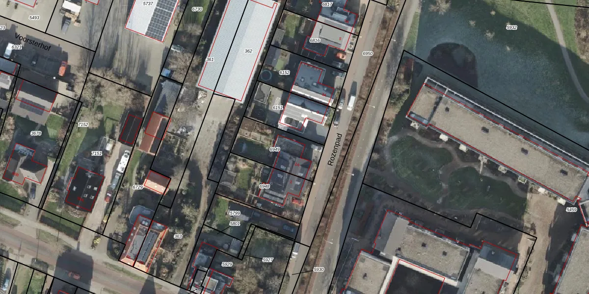 Het perceel waarop Rozenpad 1-A staat heeft een oppervlakte van 384 m². Dit is een groot perceel. De perceeloppervlakte wordt geregistreerd door het Kadaster. Gedetailleerde informatie over de maten van dit perceel kunt u vinden in het rapport Kadastrale kaart met maatvoering van Rozenpad 1-A.