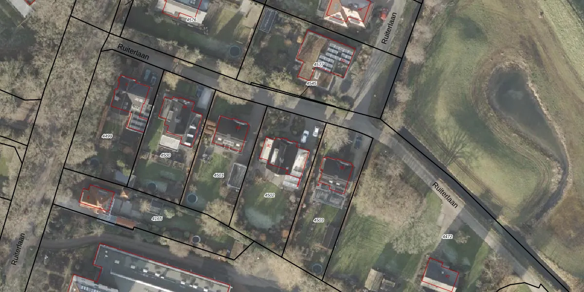 Het perceel waarop Ruiterlaan 3-C staat heeft een oppervlakte van 980 m². Dit is een groot perceel. De perceeloppervlakte wordt geregistreerd door het Kadaster. Gedetailleerde informatie over de maten van dit perceel kunt u vinden in het rapport Kadastrale kaart met maatvoering van Ruiterlaan 3-C.