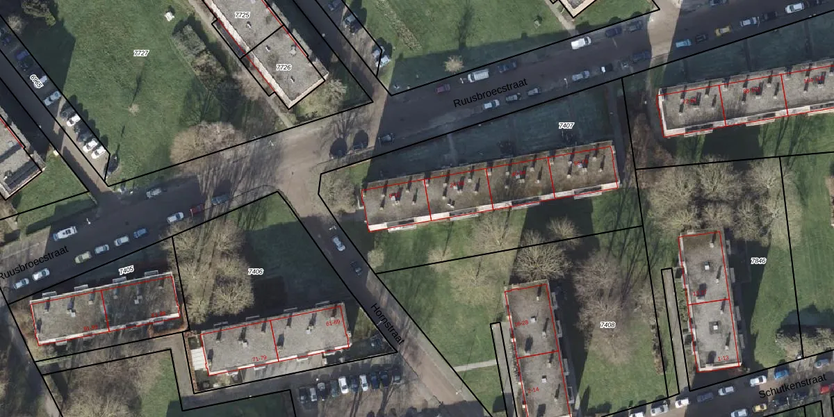 Het perceel waarop Ruusbroecstraat 16 staat heeft een oppervlakte van 2220 m². Dit is een zeer groot perceel. De perceeloppervlakte wordt geregistreerd door het Kadaster. Gedetailleerde informatie over de maten van dit perceel kunt u vinden in het rapport Kadastrale kaart met maatvoering van Ruusbroecstraat 16.