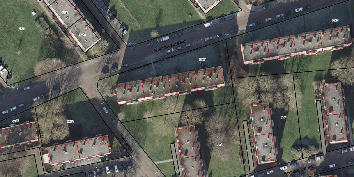 Het perceel waarop Ruusbroecstraat 40 staat heeft een oppervlakte van 2220 m². Dit is een zeer groot perceel. De perceeloppervlakte wordt geregistreerd door het Kadaster. Gedetailleerde informatie over de maten van dit perceel kunt u vinden in het rapport Kadastrale kaart met maatvoering van Ruusbroecstraat 40.