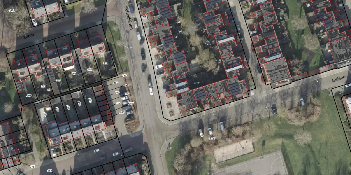 Het perceel waarop Scheldelaan 28 staat heeft een oppervlakte van 1,5 ha. Dit is een zeer groot perceel. De perceeloppervlakte wordt geregistreerd door het Kadaster. Gedetailleerde informatie over de maten van dit perceel kunt u vinden in het rapport Kadastrale kaart met maatvoering van Scheldelaan 28.
