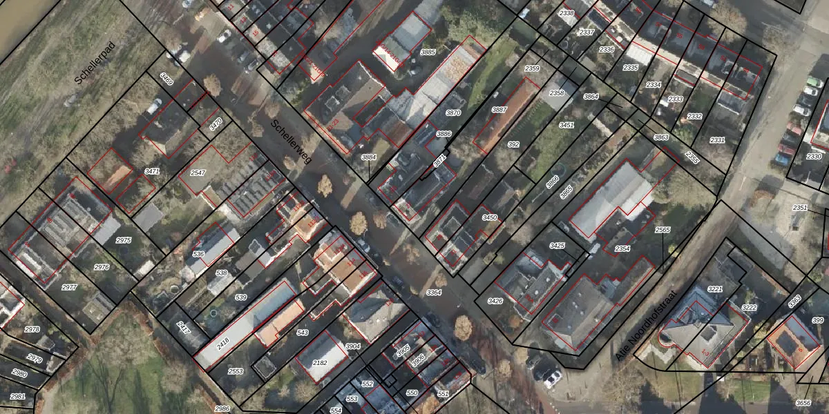 Gebruik de zoekbalk of klik op een perceel voor informatie over de adressen binnen dit perceel.
