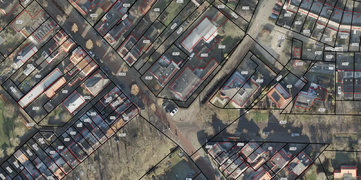 Gebruik de zoekbalk of klik op een perceel voor informatie over de adressen binnen dit perceel.