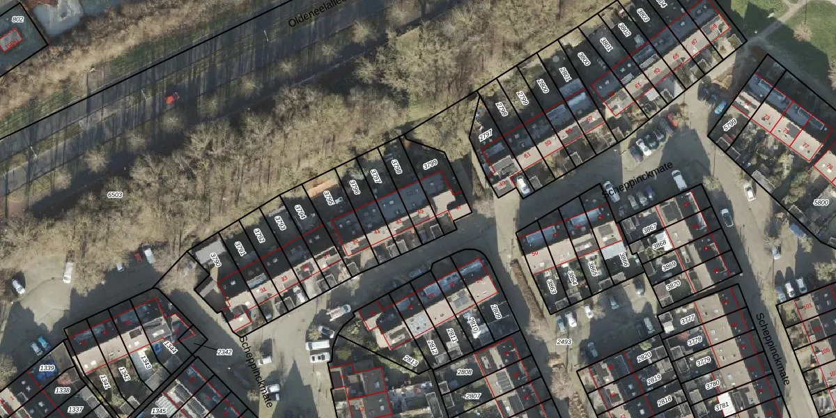 Gebruik de zoekbalk of klik op een perceel voor informatie over de adressen binnen dit perceel.