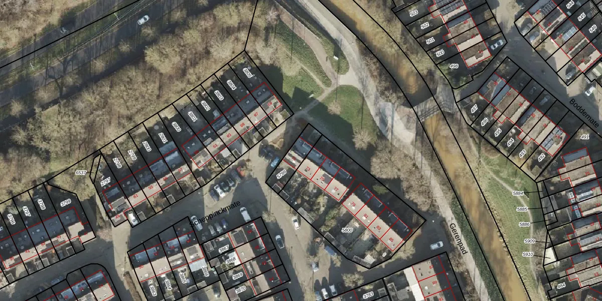Gebruik de zoekbalk of klik op een perceel voor informatie over de adressen binnen dit perceel.