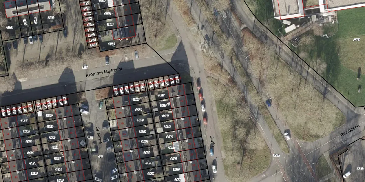 Gebruik de zoekbalk of klik op een perceel voor informatie over de adressen binnen dit perceel.