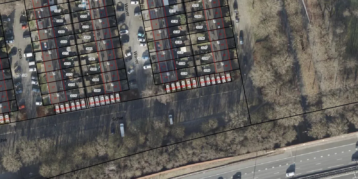 Gebruik de zoekbalk of klik op een perceel voor informatie over de adressen binnen dit perceel.
