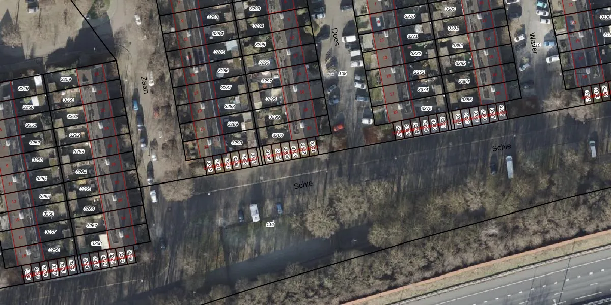 Gebruik de zoekbalk of klik op een perceel voor informatie over de adressen binnen dit perceel.